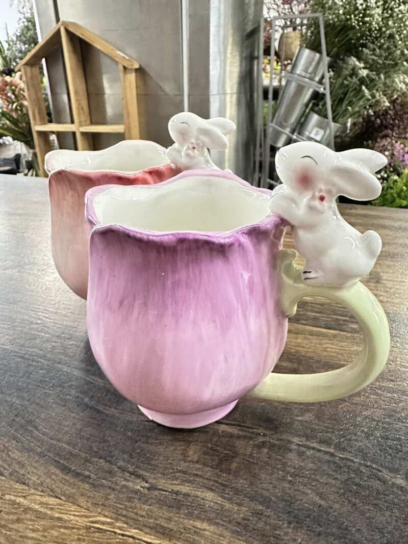 Tulipánové salky vo fialovej a ružovej farbe so zajkom
